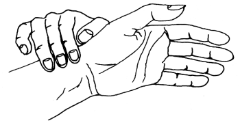 a kéz rajta tartását jelenti, mely által a csuklón tapintható pulzust kitapintva az orvos diagnózist állít fel.